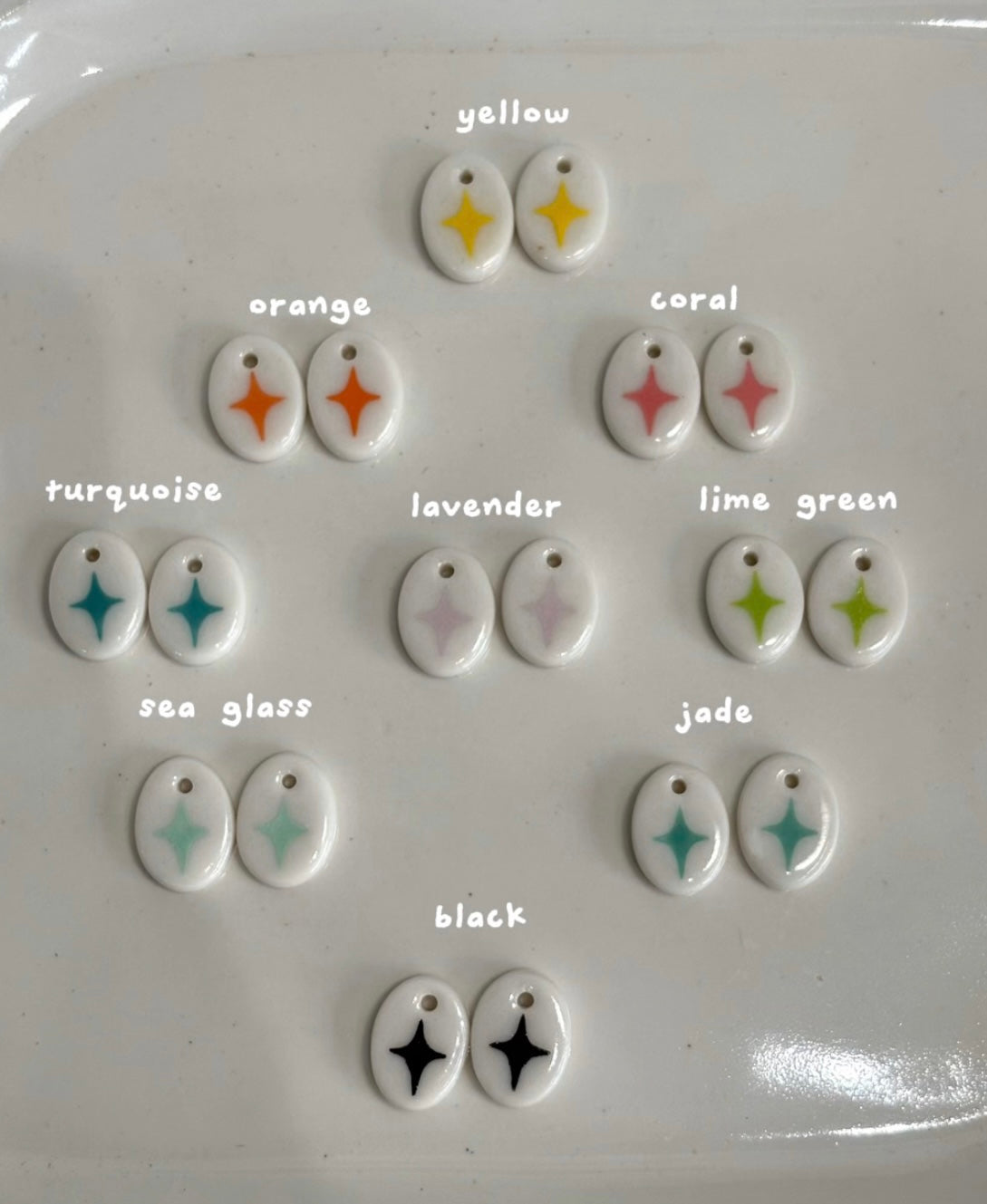 Our porcelain charms are handmade by Molly in her Missouri home. Every charm begins with porcelain that is rolled out, cut, cleaned by hand before going to the kiln for their bisque firing— a process that takes about 18 hours to heat up and then cool.